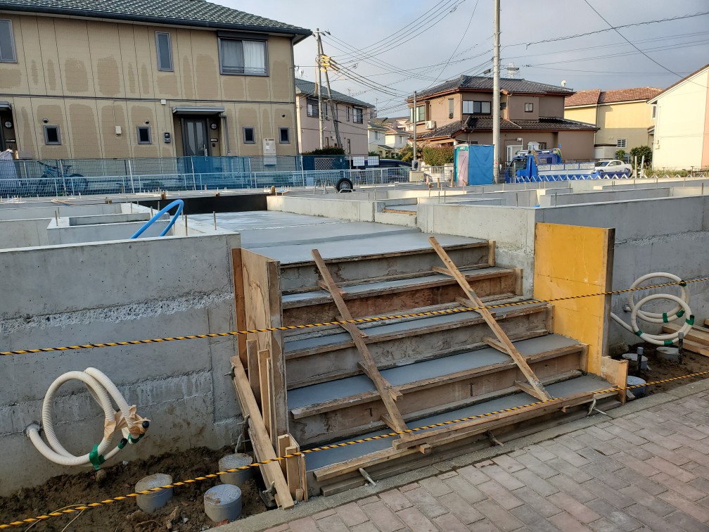 22日目 A号棟 B号棟 階段、土間コンクリート打設