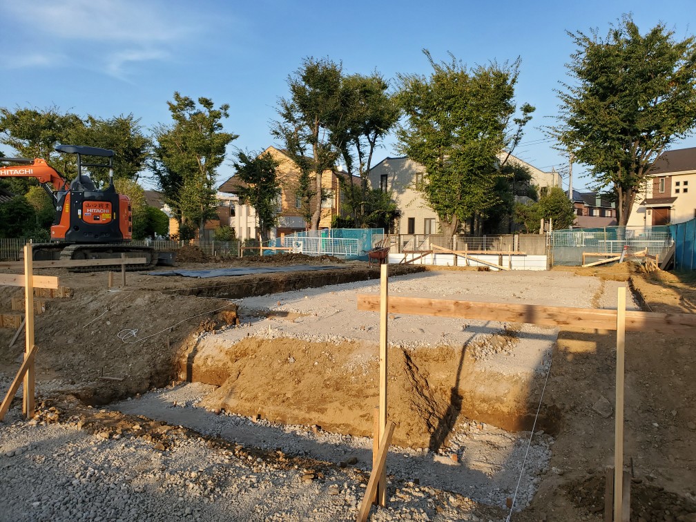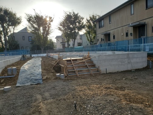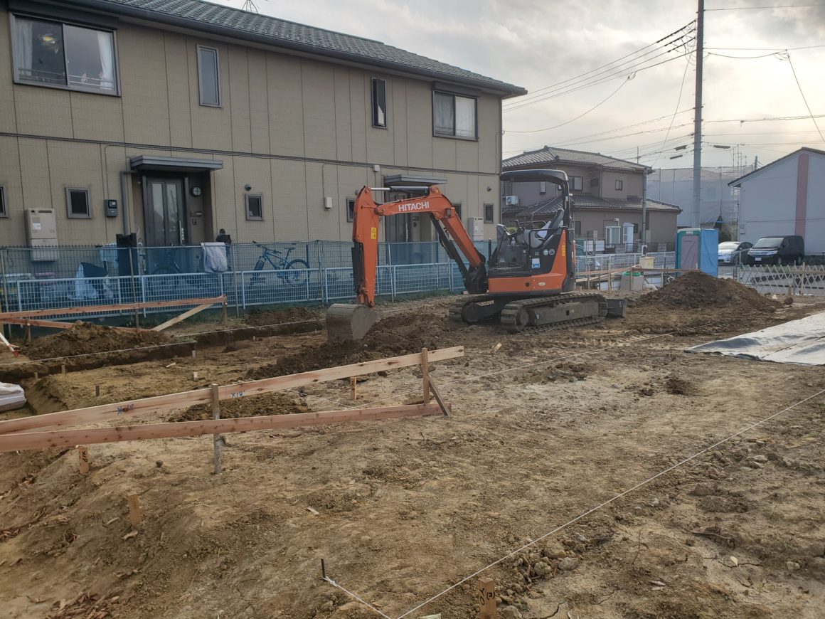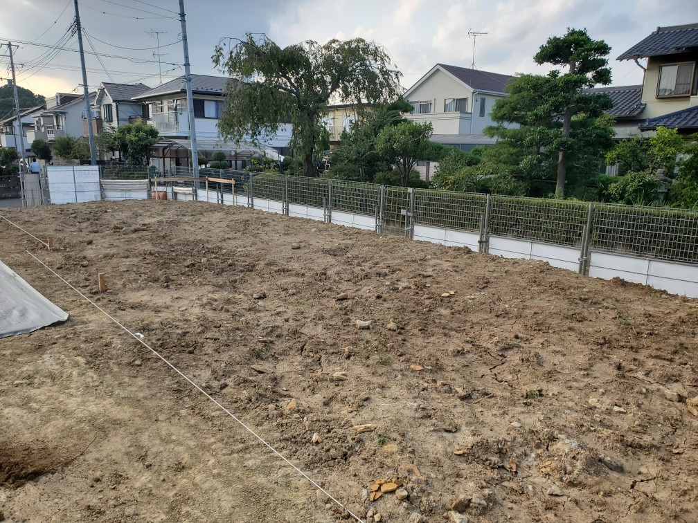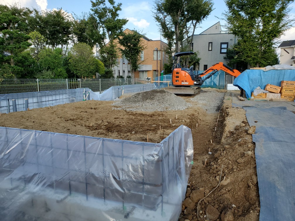 A号棟埋め戻し、前深基礎部分を養生をして初めました。現場にストックしている土で補ったので