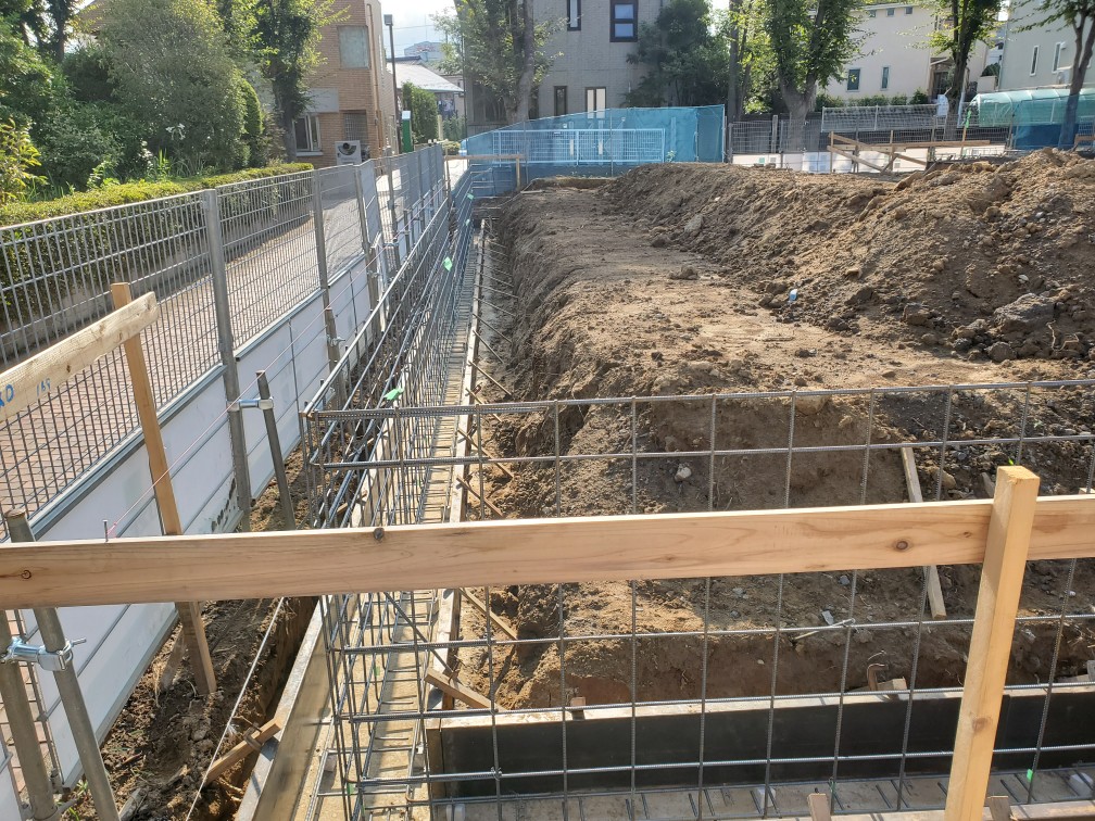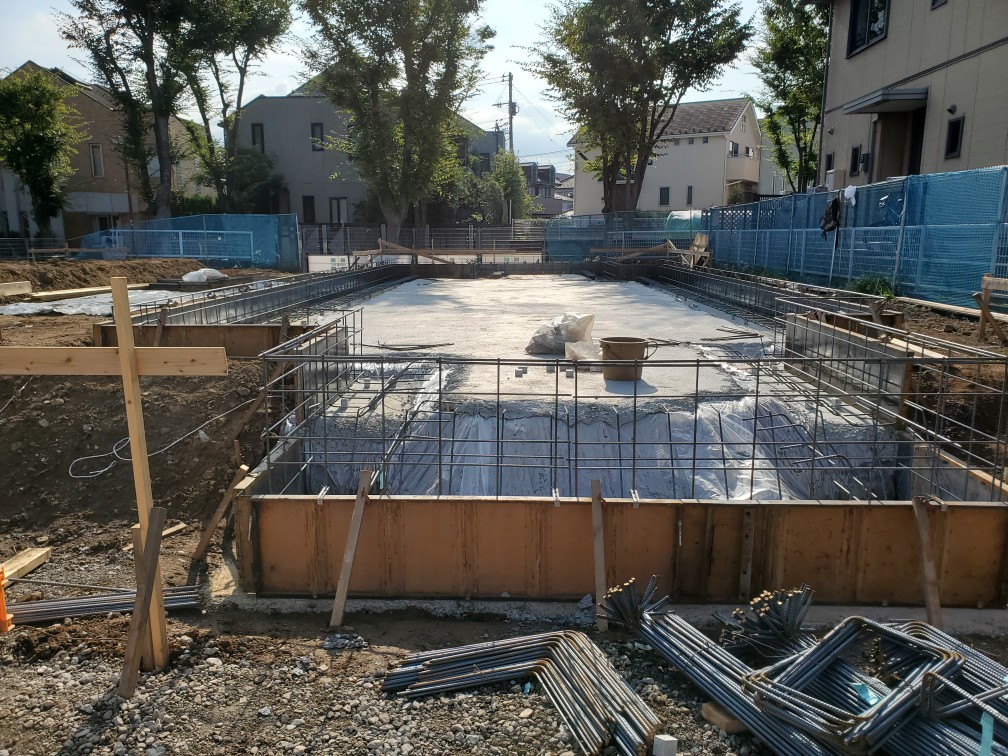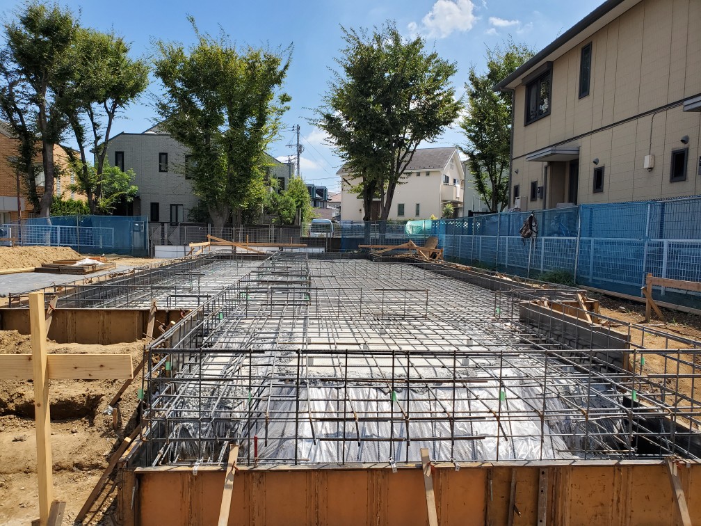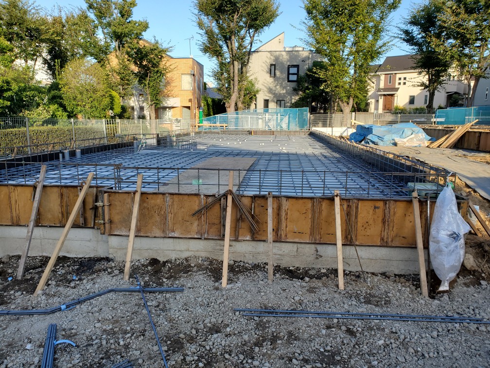 午前中墨出外枠、午後から配筋をしました。暑くて少しバテぎみでしたが何とかスラブ配筋まで並べる