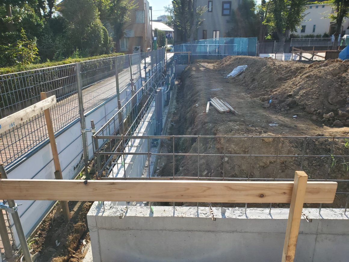 A号棟深基礎部分の型枠ばらしその後に設備配管のために水道屋さんが控えていたので、急いで
