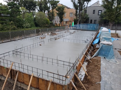 耐圧コンクリート打設、生コン車も順調に来て、早めに押さえて終えて片付けをしてる時に突然雨がっ降ってきました。すぐに晴れて大丈夫でした。