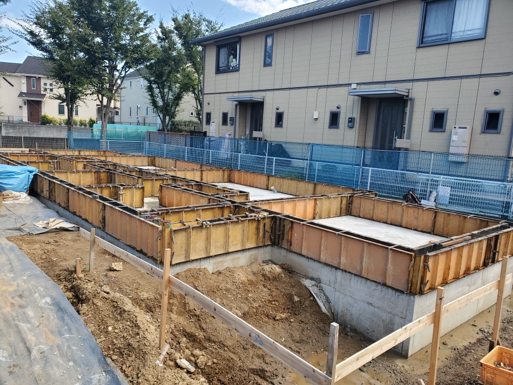 深基礎部分の立ち上がり枠組み立て鋼製枠を二段重ねての作業だったので、色々気をつけて進めました。