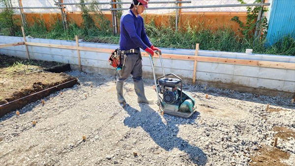 根伐も終わり、砕石敷均しはネコで運ぶ距離があったので少し時間がかかりました。