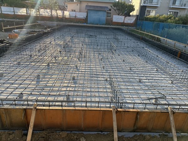 A棟に引き続きB棟の配筋をしました。通りや鉄筋のかぶりに注意しながら配筋をしました。小さなゴミもきれいに片付け作業を終えました。後日、スリーブ補強筋の取り付け作業を行います。