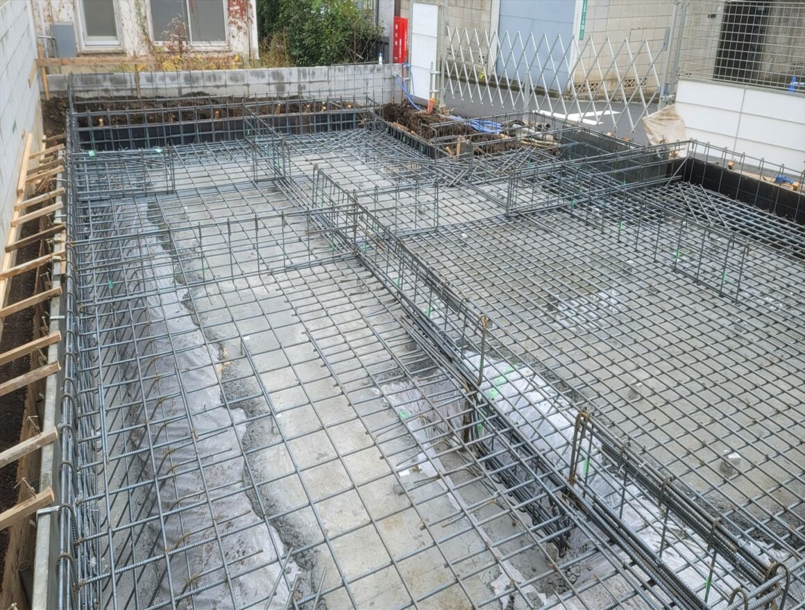 ひとまず配筋完了まで作業が進み、補強筋の入れ忘れがないか確認しながら作業を進めました。段差が多かったので少し大変でしたが配筋完了することが出来ました。
