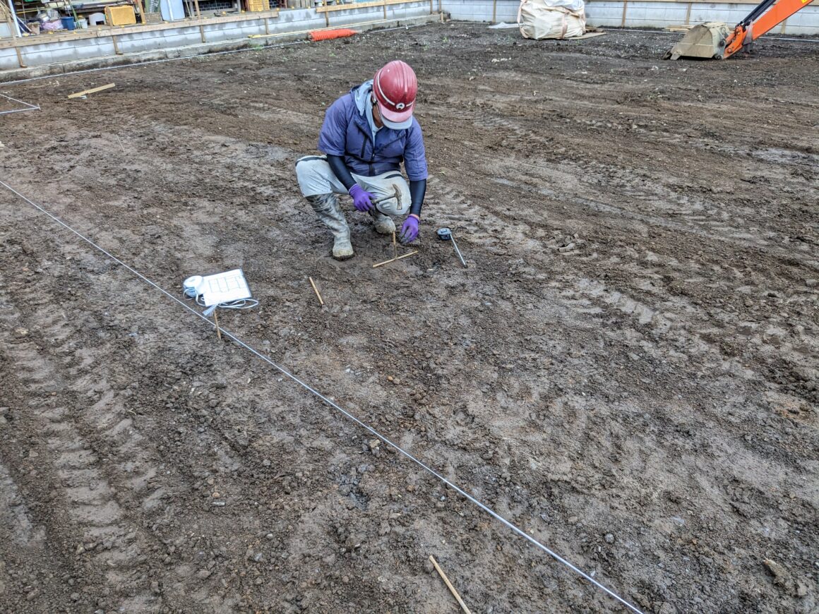 今日は、地縄張り及び遣り方を出しました。順調に作業を終えました。