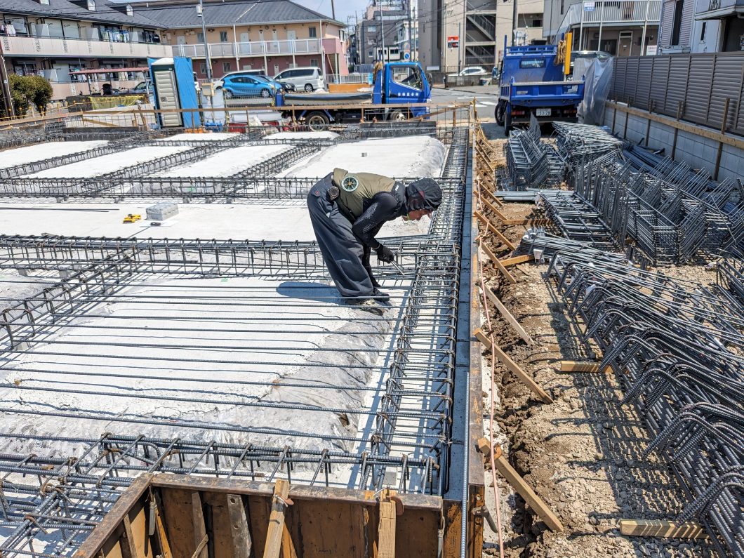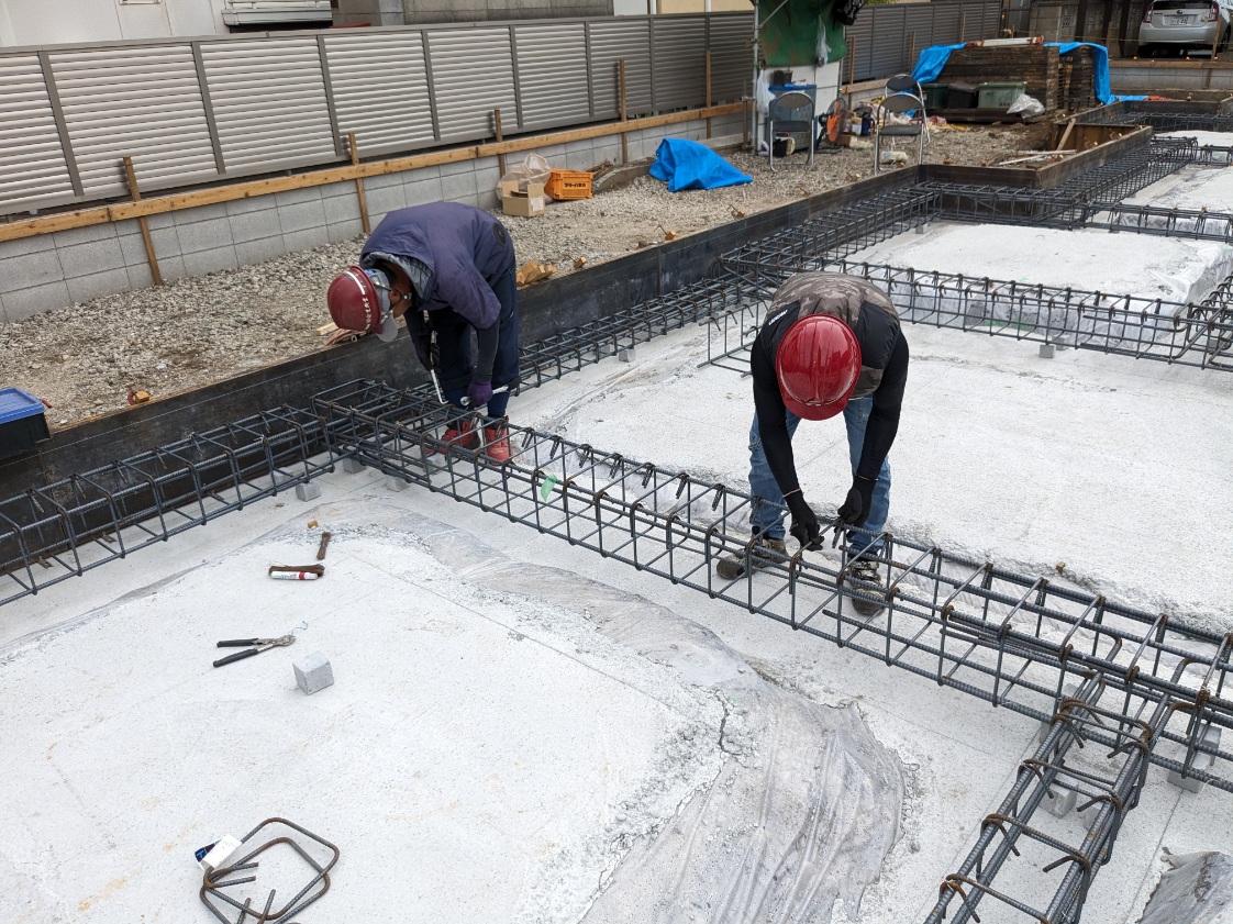 今日も引き続き配筋作業です。作業人員が増えたため、順調に進みました。