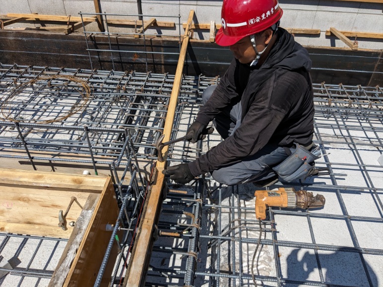 引き続き梁配筋の作業です。今日も熱中症に気を付けて作業しました。