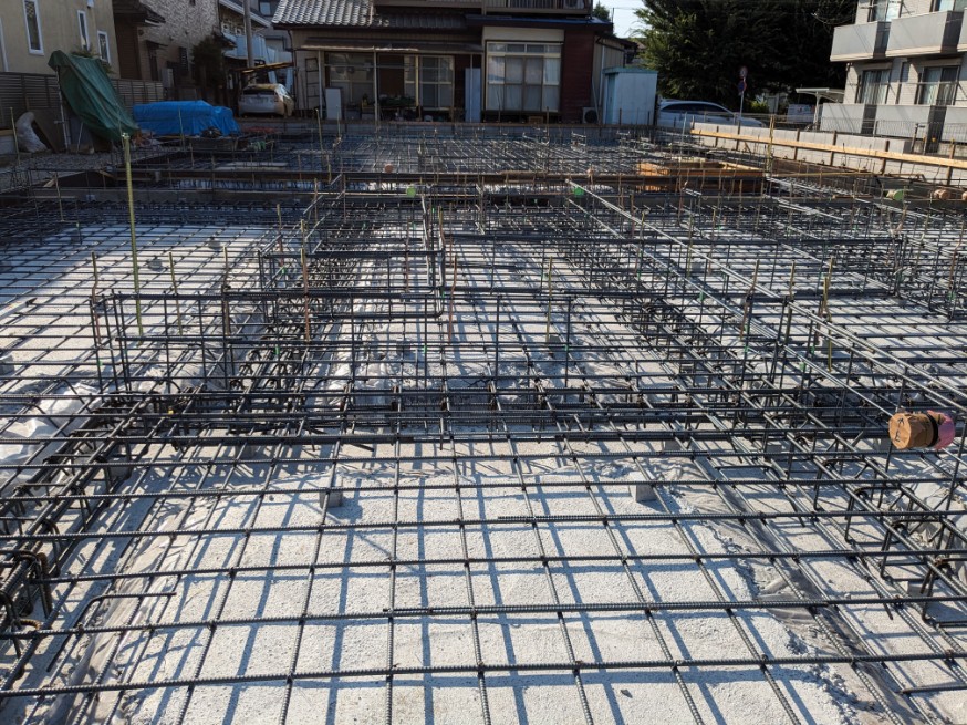 今日で配筋作業が終わりました。忘れ、ミスがないか再度確認しました。