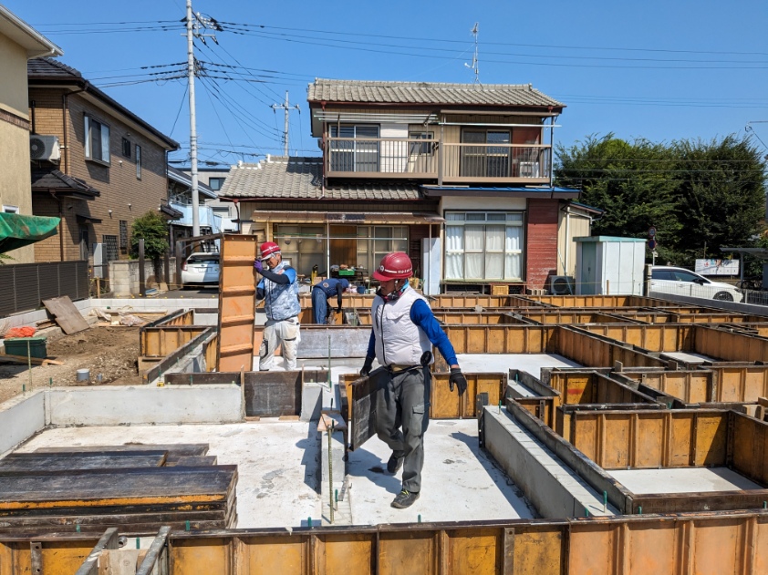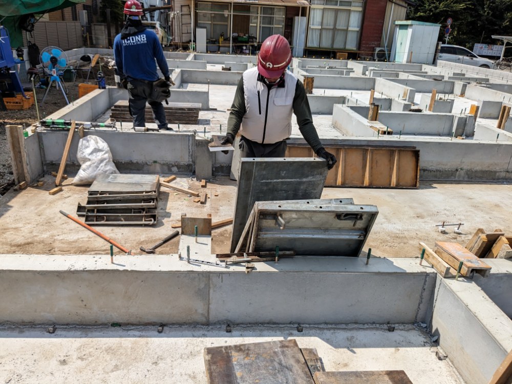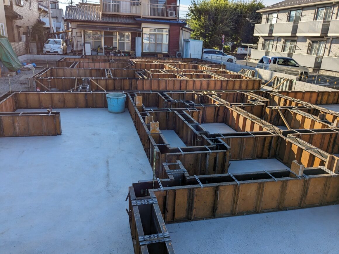 墨出しから始まり寸法の間違いや忘れがないか確認しながら進めて、それから立ち上がり枠をやりました。