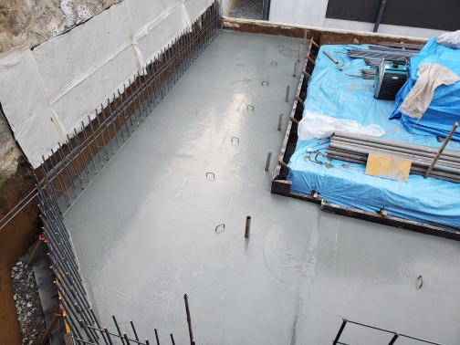 今日は、午後からの耐圧コン打設なので午前中段差枠枠やアンカーセットをやり午後から耐圧コン打設をやりました生コン車も回転が良くて順調に終わることができた