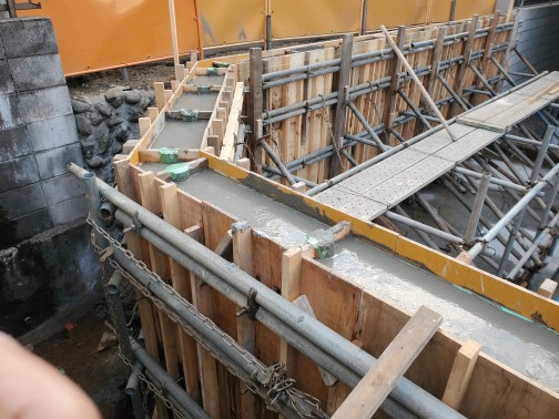 今日は、午後からポンプ車で捨コン打設をしました、