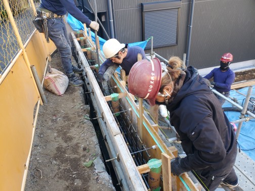 今日は、配筋作業をしました。前日段取りをしたので早めに終わることができた