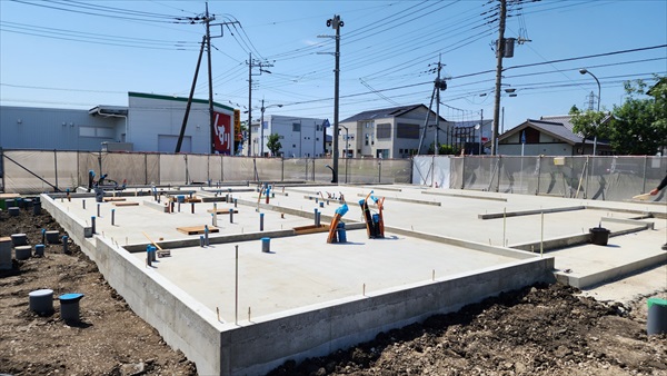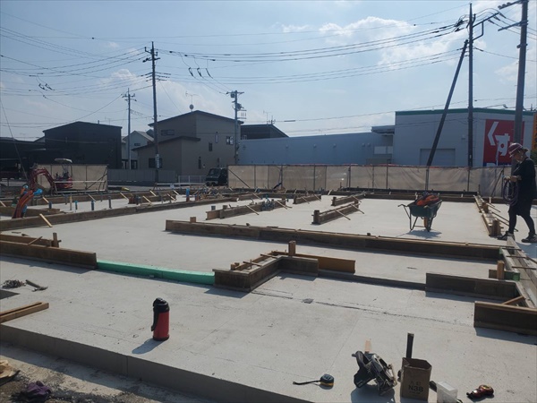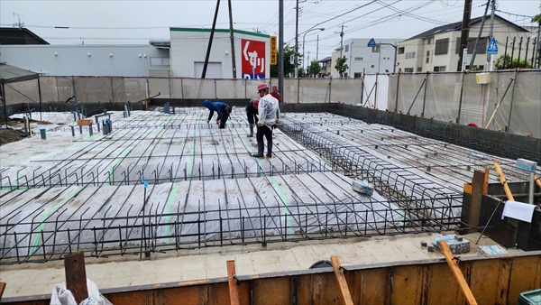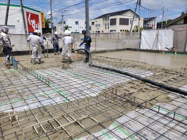 今日は耐圧コンクリート打設を行いました。外枠に圧がかかるので慎重に打設をしました。