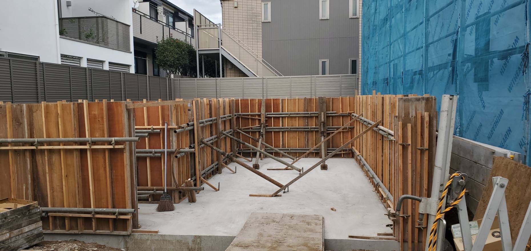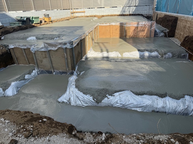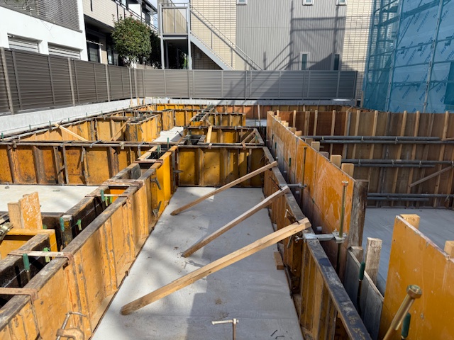 枠組みをして、一部立ち上がりコンクリートを打った箇所の枠をばらしたので