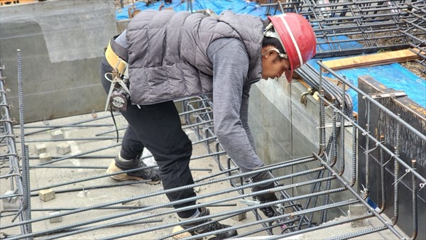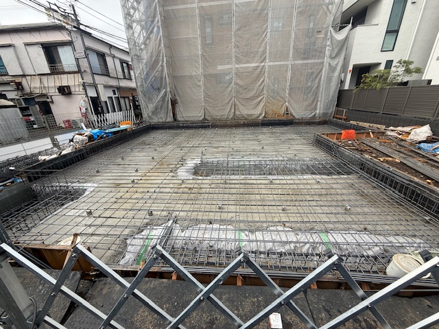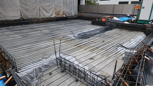 今日は、朝から枠の固めをして、10時頃から配筋を始めました。午後から雨も降って滑らないように気を付けて作業をしました。