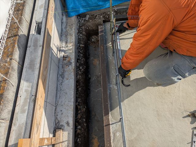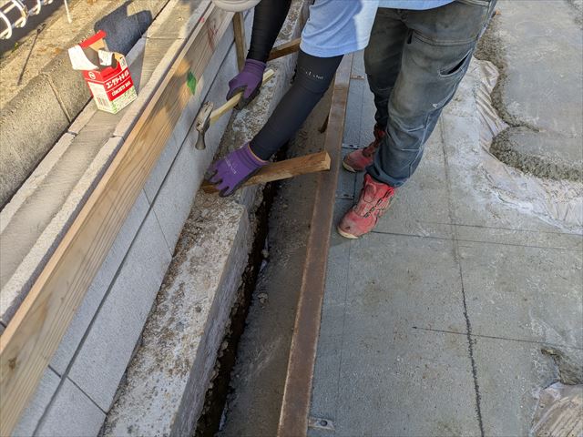 残りの配筋作業、段差枠の取り付け、アンカーセットをし、打設までの作業を終えました。