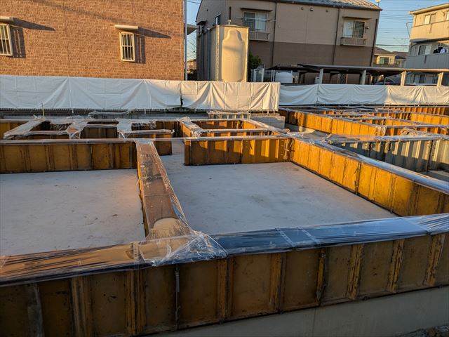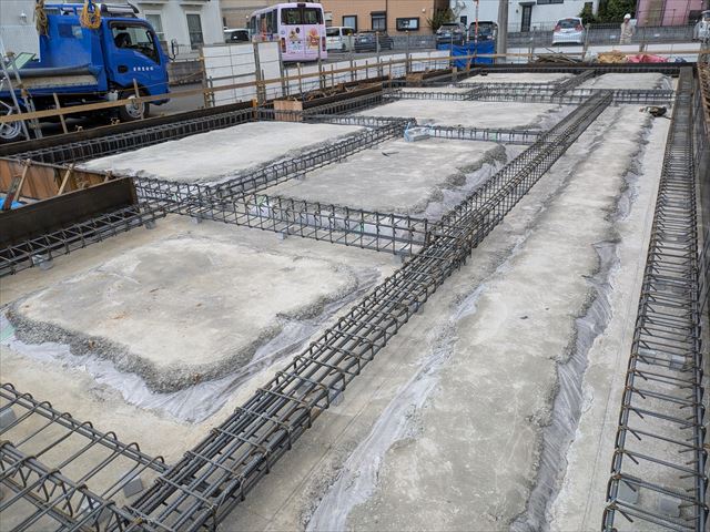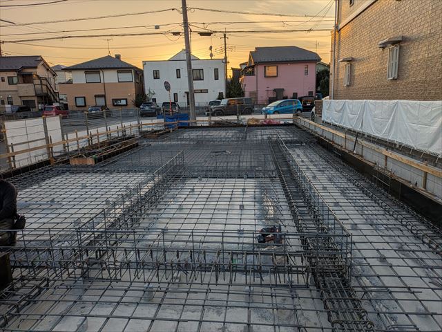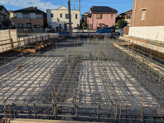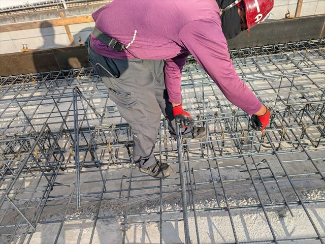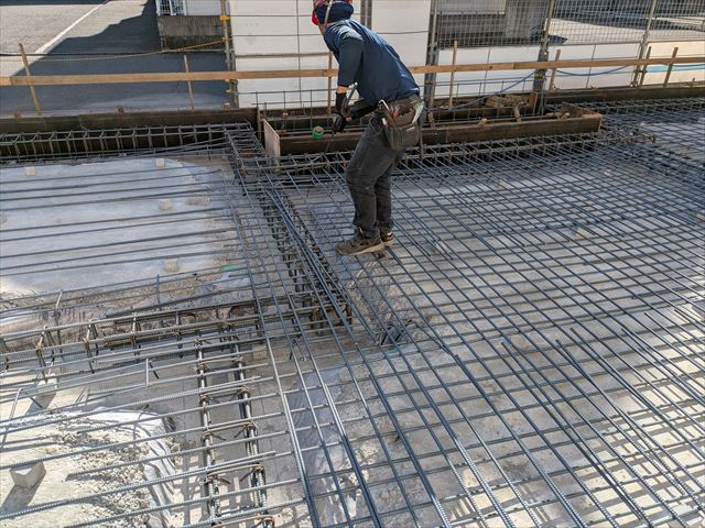 今日は、スラブ、立ち上がりの配筋作業でした。結束不足が無いか、確認しながら作業をしました。