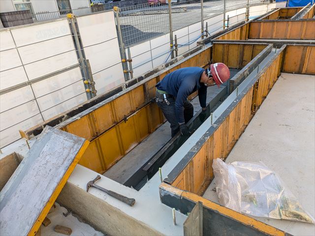 今日から配筋作業です。補強筋の入れ忘れ、梁の位置の確認しながら作業をしました。