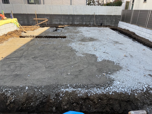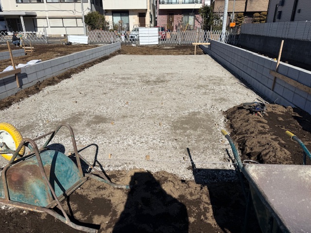 最初の着工の2棟です。1棟は砕石が沢山入るので