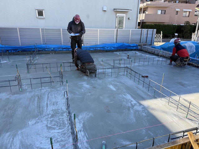 今日は朝から鉄筋搬入をして、配筋をやりました。