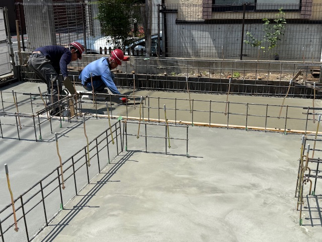 今日は午前中にコンクリート打設が終わり午後から天端レベラーを流しました。