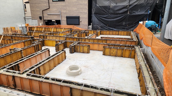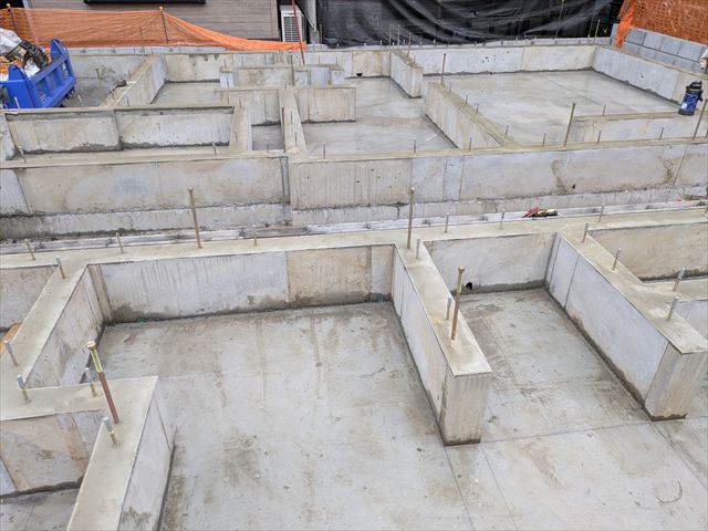 今日は朝からC・D棟の立ち上がりコンクリート打設でした。車庫部分に関しては、枠を重ねているのでゆっくり慎重に打設をしました。