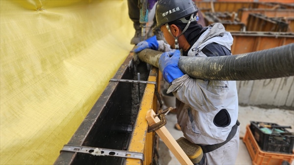 梁の深いところを一度流してもらい進めました。