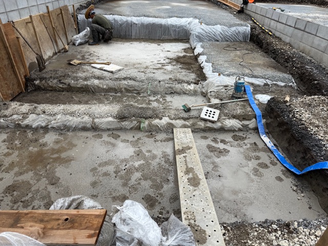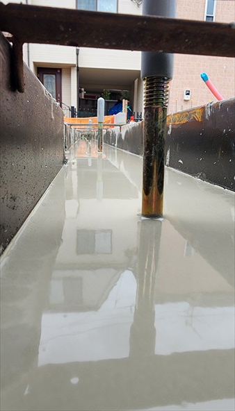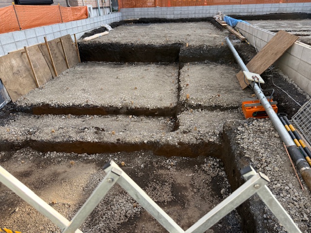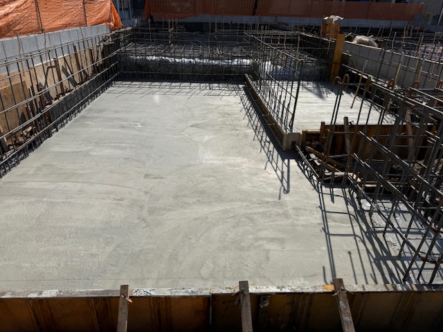 耐圧コンクリート打設は高低差があるので2回に分けます。