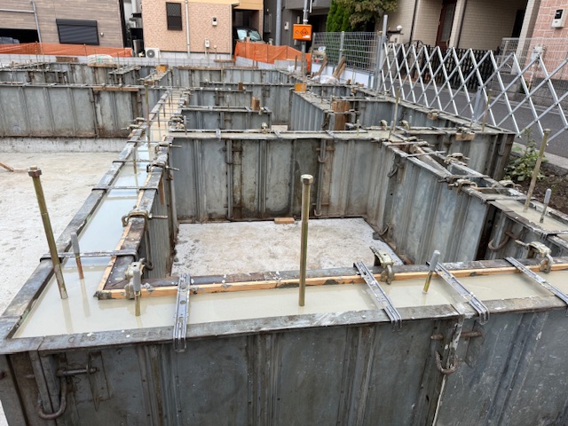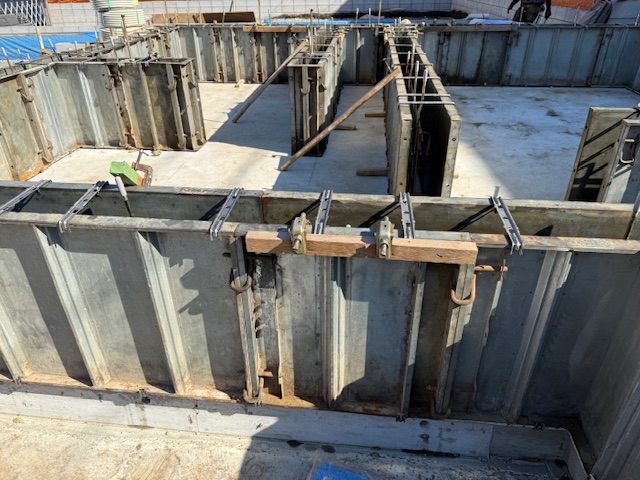 枠はばらさずにそのまま2回目の耐圧コンクリート打設の準備で返し枠をしました。