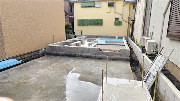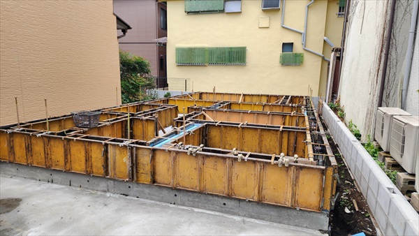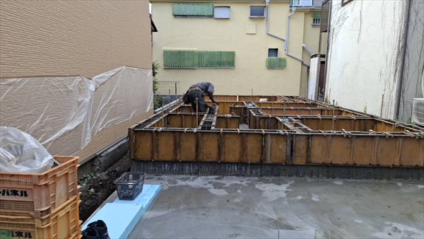 今日は朝から立ち上がりコンクリート打設をしました。打設後、コンクリートが飛んでいないか確認して作業を終えました。