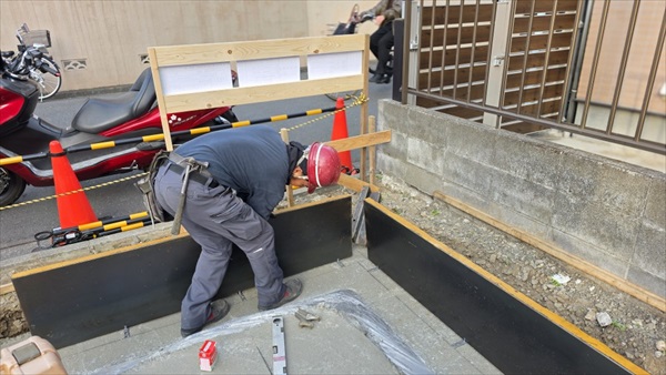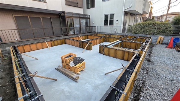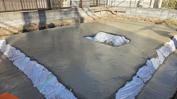 今日は午後から捨てコンクリート打設をしました。現場前が交通量があるので気を付けながら打設をしました。
