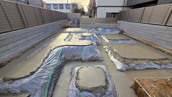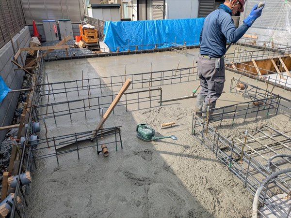 今日は午後から捨てコンクリート打設を行いました。溝の部分も丁寧に鏝で均しました。