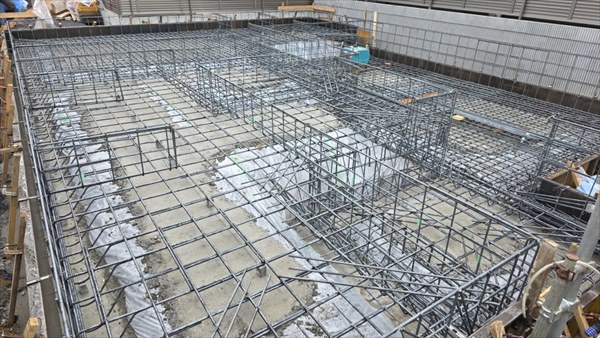 2日間で墨出しから配筋作業を行いました。補強筋などの取り付けが多かったので少し時間はかかりましたが、間違えないように確実に進めていきました。