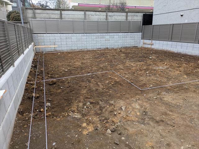 今日は、地縄を張りました。配置の寸法間違いに注意しました。